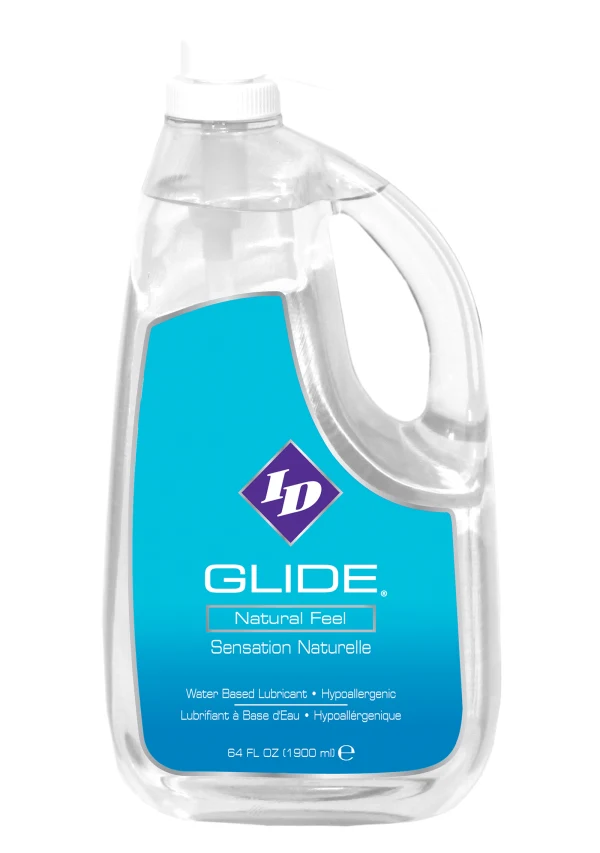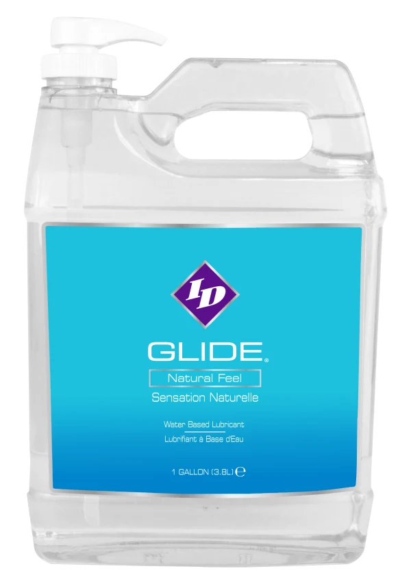 ID Glide est proposé en plusieurs formats, du tube voyage pratique aux grands formats comme le 64 oz avec pompe et le gallon de 128 oz.