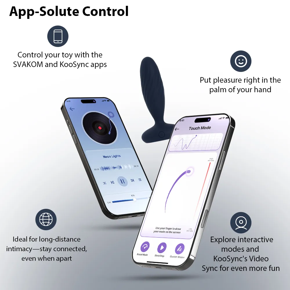 - Contrôle via télécommande ou application SVAKOM