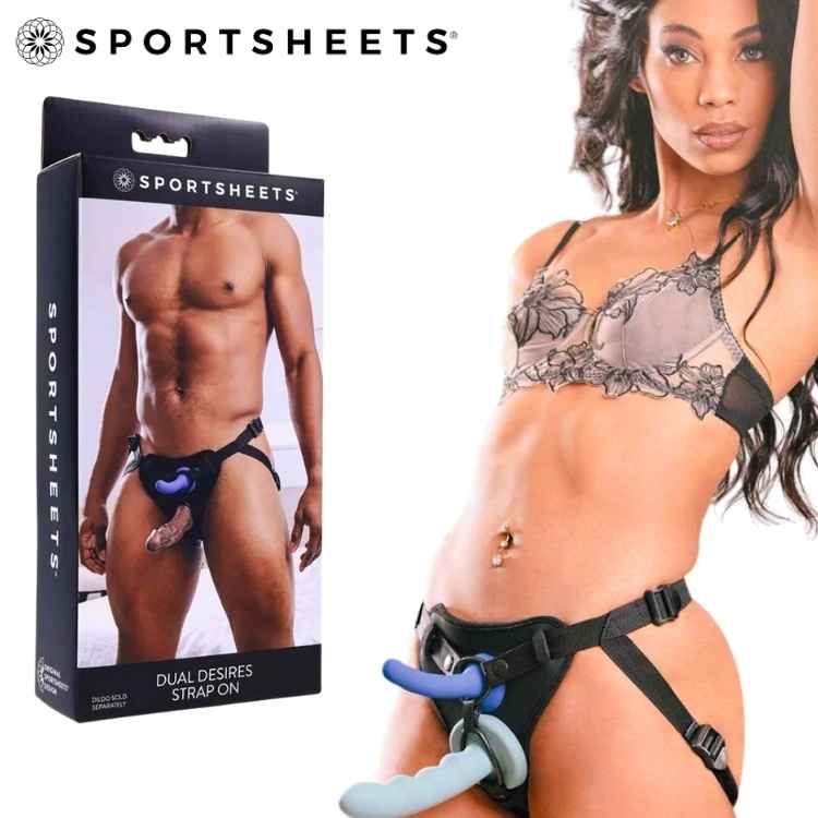 Découvrez le harnais Dual Desires Strap-On de Sportsheets, conçu pour offrir une double pénétration et un plaisir partagé incomparable.