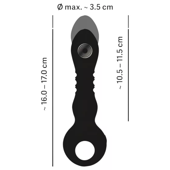 Spécifiquement, la longueur totale de ce vibrateur varie entre **6.3 et 6.7 pouces** (16-17 cm), avec une longueur insérable optimale allant de **4.1 à 4.5 pouces** (10.5–11.5 cm). Son diamètre maximal est d’environ **1.4 pouce** (3.5 cm). Son contrôle est simple et intuitif grâce à son anneau pratique et ses boutons discrets.